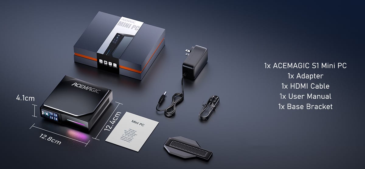 - Mini PC: At the heart of it all is the ACEMAGIC S1 Mini PC itself, a small but powerful device ready to handle tasks.