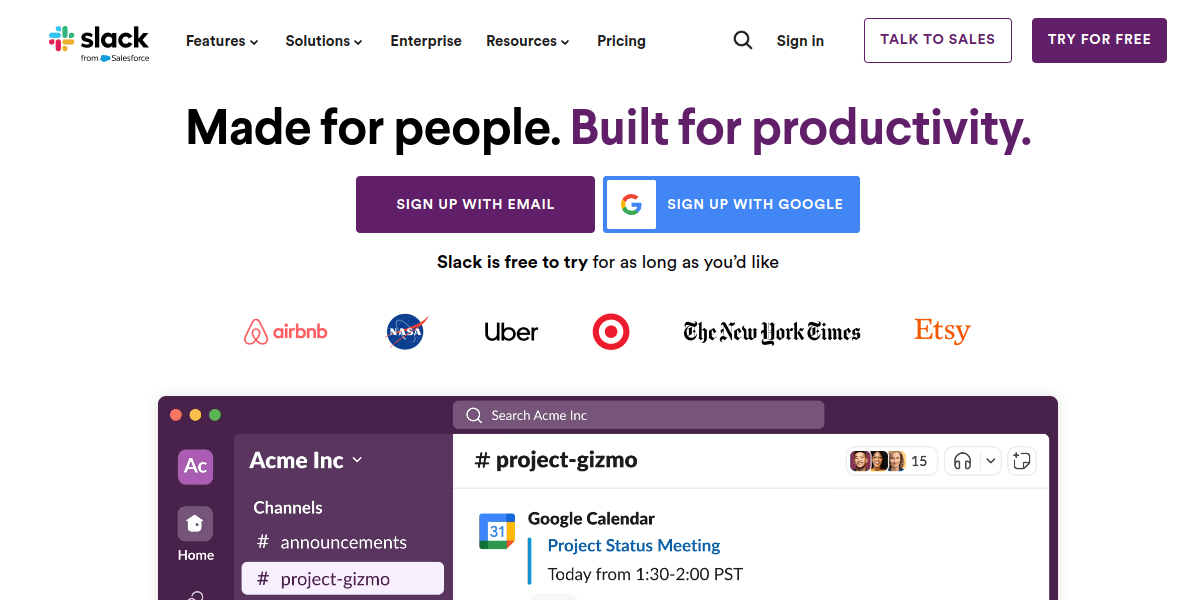 This tool does more than keep conversations going; it keeps teams organized. With Slack’s neat navigation panel, setting up meetings on the calendar takes just a few clicks. Creating group chats or starting voice calls is straightforward too, ensuring that everyone stays looped in no matter where they are working from.