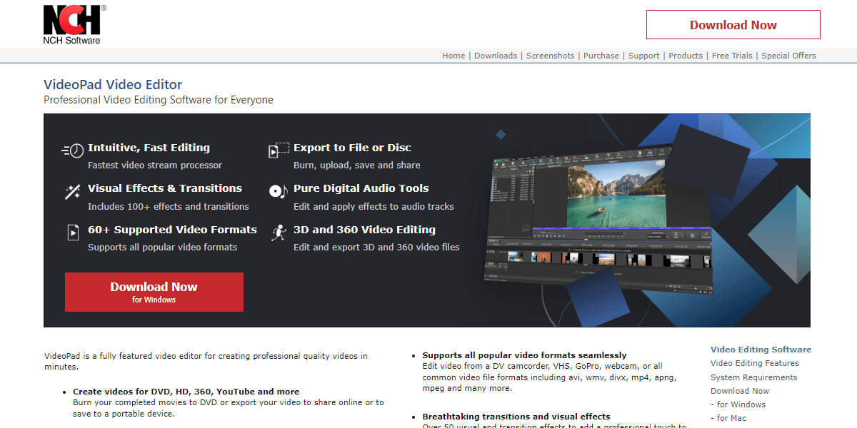Videopad was developed by NCH software. It’s a free video editing software used for professional tasks and is profoundly used among new learners.