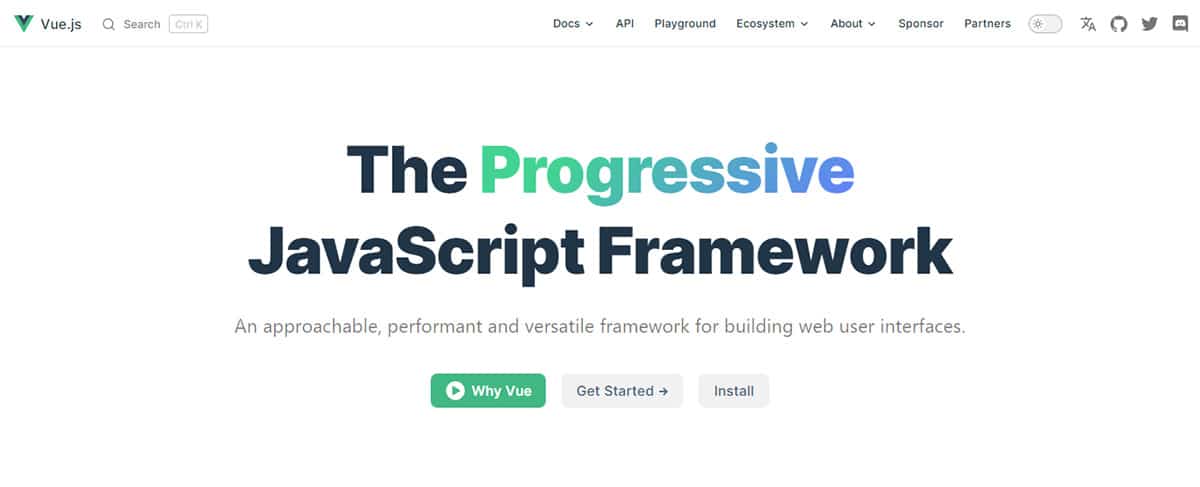 Another major front-end framework on the list is the Vue.js framework. It is a lightweight JavaScript-based framework that is easy to install and enables you to develop the website in a matter of minutes.
