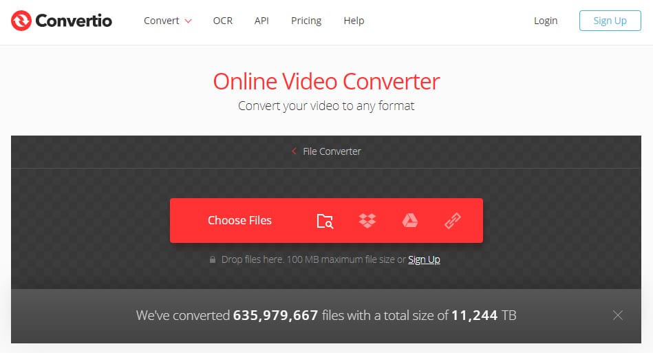 Convertio is an online service that has enough tools to be a standalone desktop program. It converts between an infinite number of video and audio formats. For instance, it supports unusual formats like M2TS, F4V, SWF, VOB, and many more. You can upload files from your computer, a cloud file hosting service, or insert a link to a video. Plus, you can convert several videos at a time, so it can be a real time-saver.