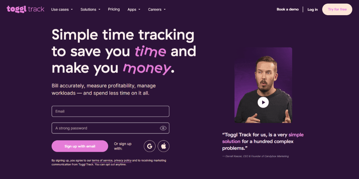 With its intuitive interface, using Toggl Track to track your work performance is effortless. The software helps you make time tracking a habit thanks to powerful features like easy editing options and an array of integrations with other productivity tools such as Trello or Slack.