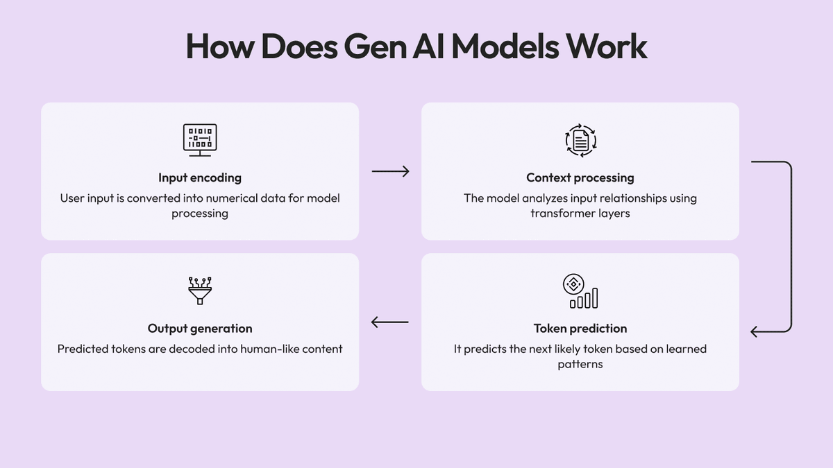 The “generative” part is there because models learn from large datasets and then are able to “generate” or produce new globals by training on examples of those reactions. That’s what allows them to write a persuasive product description or create a synthetic medical image.