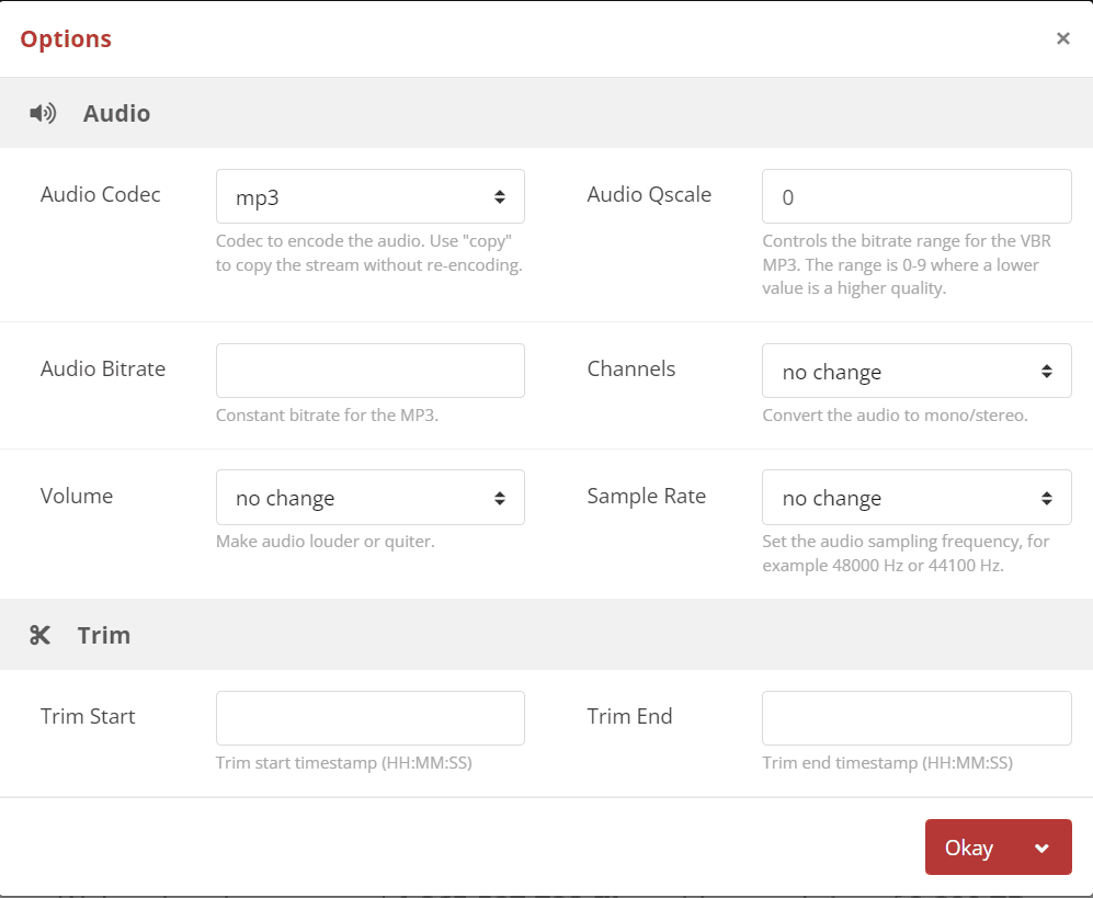 Convertio is also an online video converter that supports 300+ formats, including MP3. You can use it to convert various audio files in a batch. Moreover, it allows you to cut down the MP3 files without downloading any software. But you can’t preview the audio file.