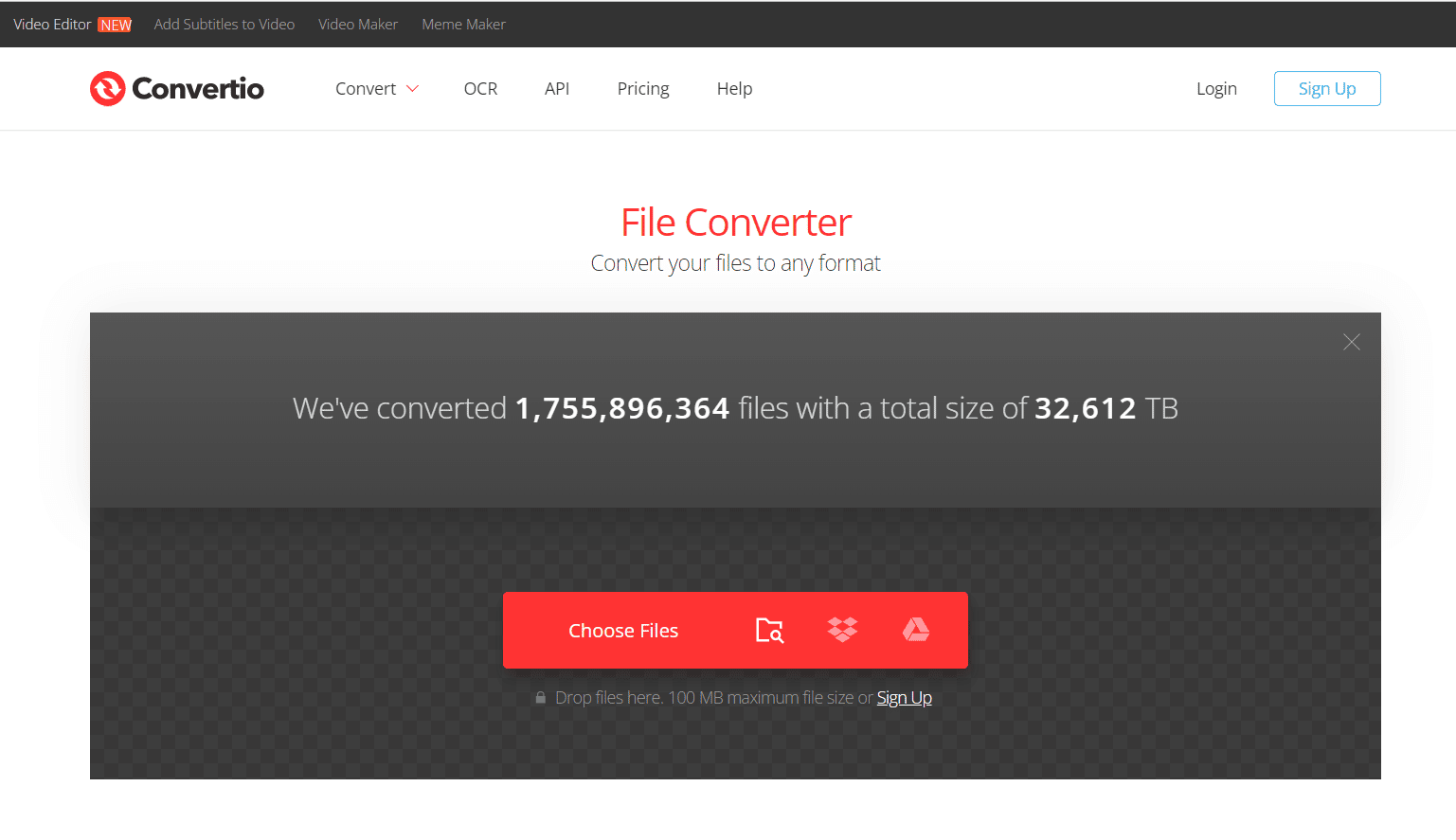 Launch the Convertio on your device directly. And click the “Choose File” button to load your MP3 files to the video converter.