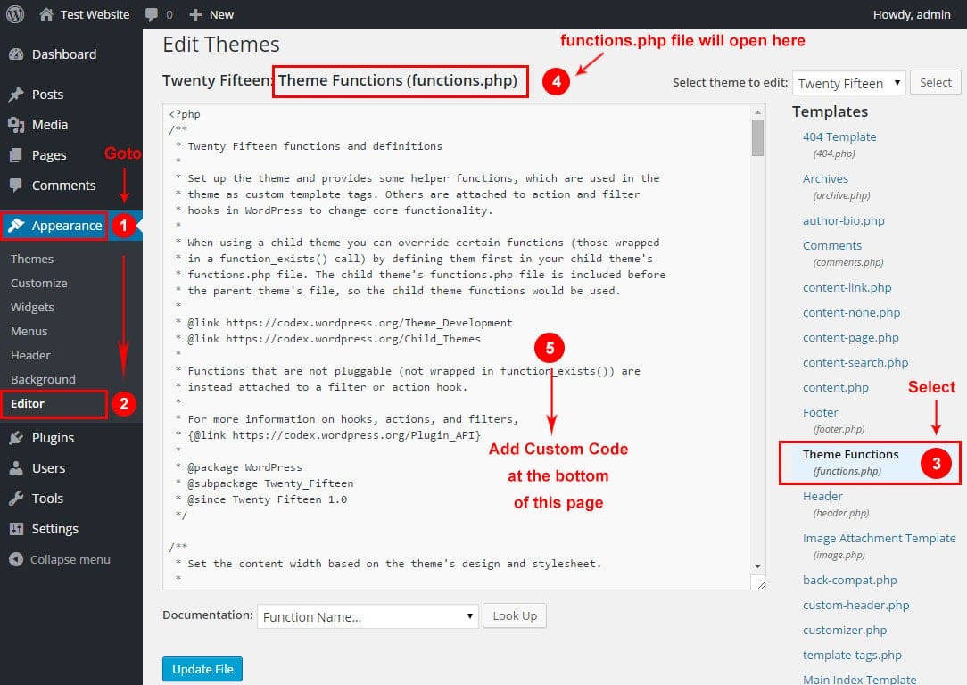 Step 2: Adding Custom Code in the Theme’s FUNCTIONS.PHP file