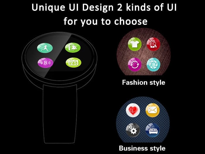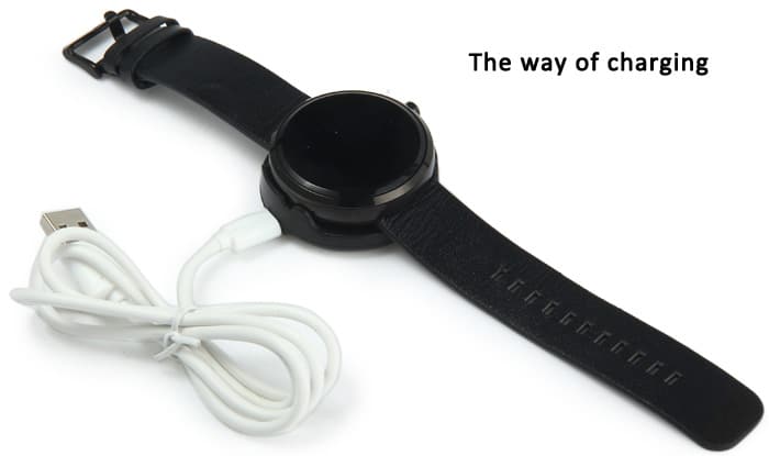 The look of this watch is very simple. The shape of the dial is pretty round with super quality genuine leather band. The case of the smartwatch is made up of steel material. It has three color options: Black, Golden & Silver.