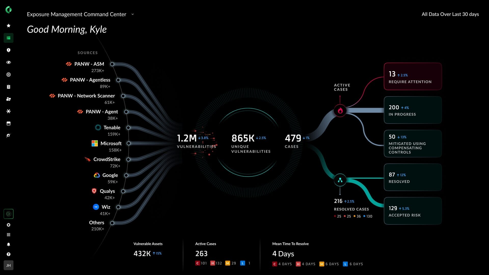 - Attack vector and exposure mapping: Finds vulnerabilities across networks, cloud, endpoints, and third-party tools to provide a unified view of exposures.
