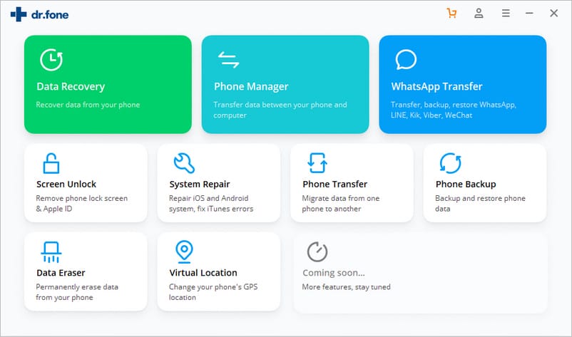 Step 2: Connect your phone to the computer and launch the Dr.Fone app.