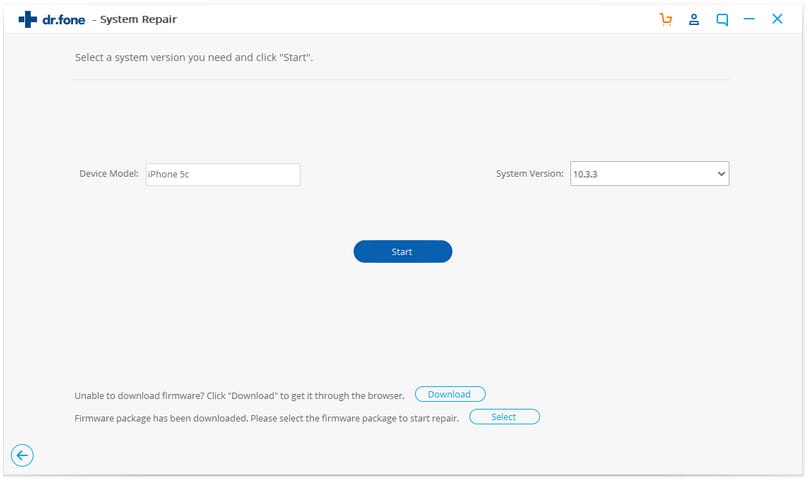 Step 6: Here, match the right iOS firmware and download it by clicking on ‘Start’.