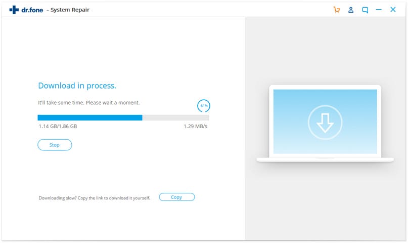 Step 8: Once, the downloading is done, Dr.Fone app will start doing its job and resolve the issue quickly.