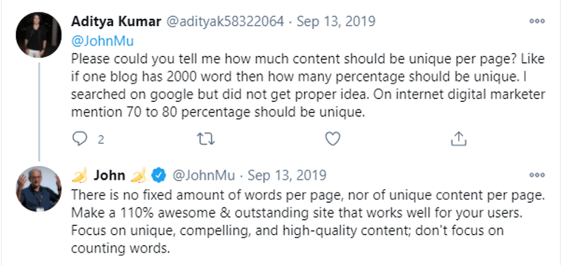 According to John Muller (Senior Analyst at Google), the content should be 110% unique and high-quality to get a better rank in the search engine. To reserve a higher rank in SERPs, you should have to focus on the uniqueness of the content.