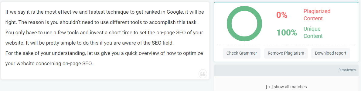 So, it will be pretty simple for you to get an idea about your content’s uniqueness and respond accordingly. If there is plagiarized content in your writing, you can paraphrase it online to make it unique with just a few clicks.