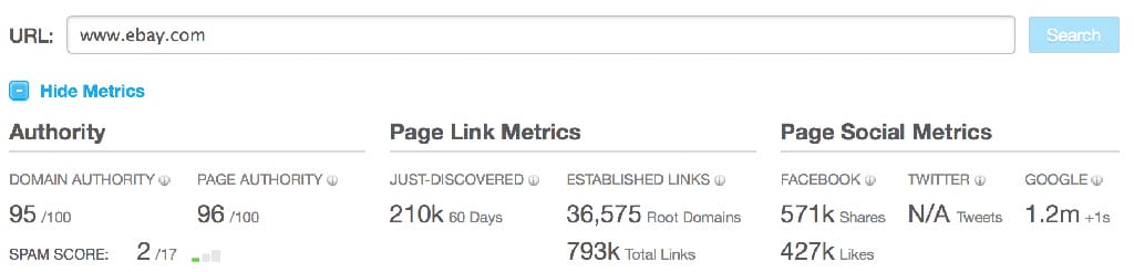 You need to be aware of your DA – Domain Authority. This is a term coined by Moz to assess the authority of a domain based on parameters like links, root domains, backlinks, brand mentions, etc. on a scale of 0-100. Facebook has a domain authority of 100/100. DA helps you understand your position in your industry when compared to your competitors.