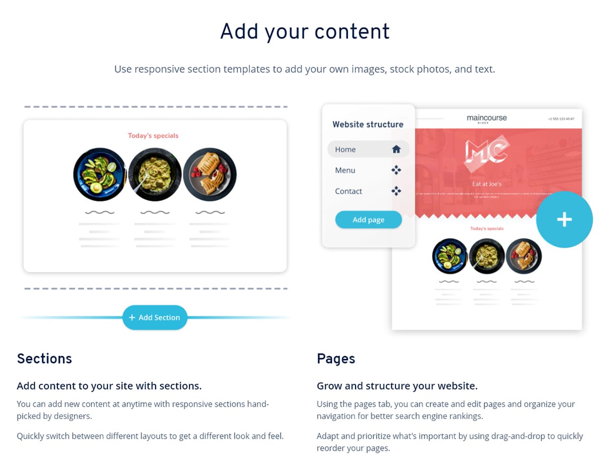 - Section – IONOS provides its users with more designed sections and content suggestions that make it easy for them to create their website quickly and with ease.