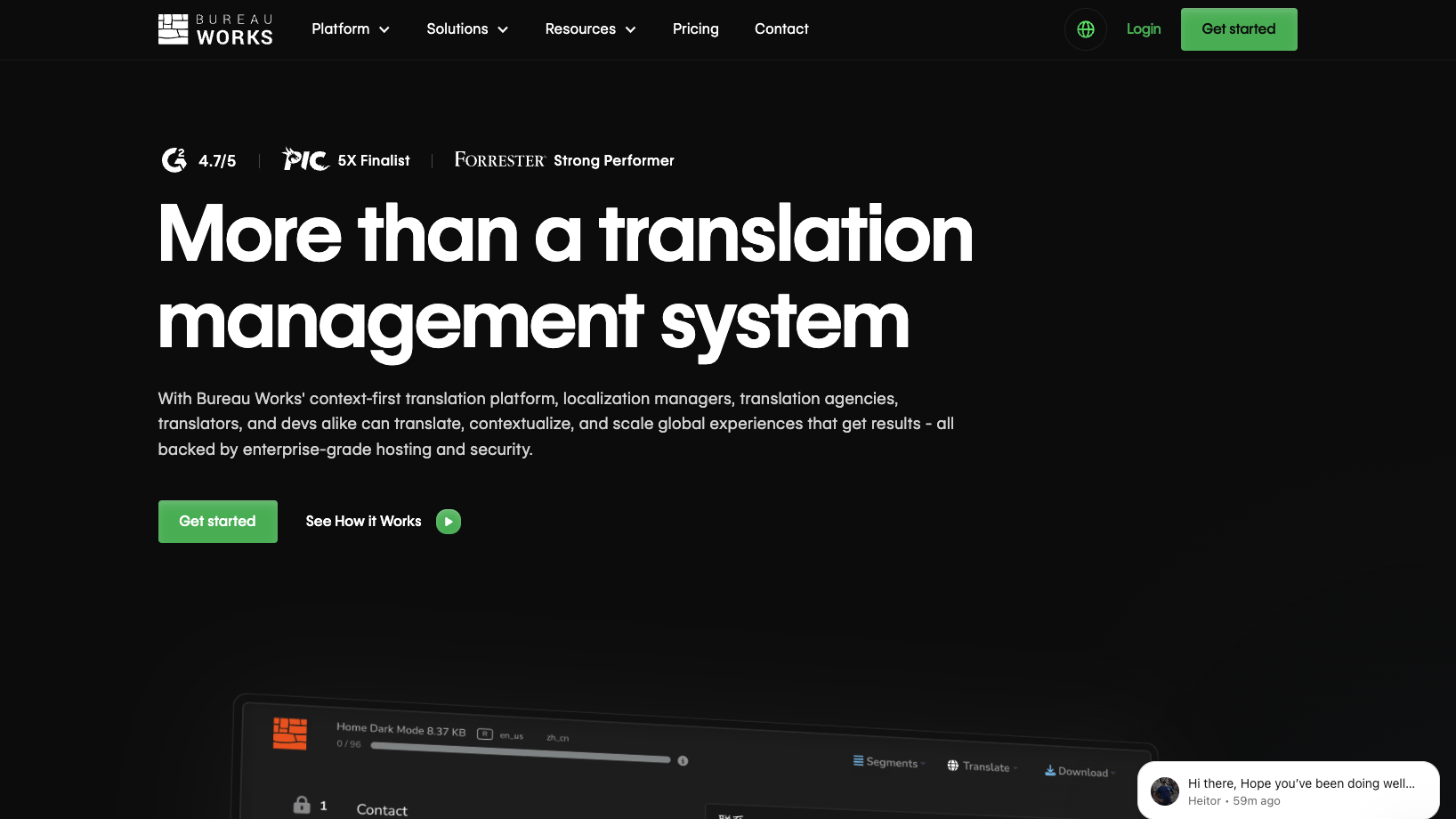 Bureau Works is a cloud-based translation management system built for large companies. It uses its own AI technology, called BWX, to manage major corporate translation projects, focusing on automatic processes and easily connecting with other technology systems.