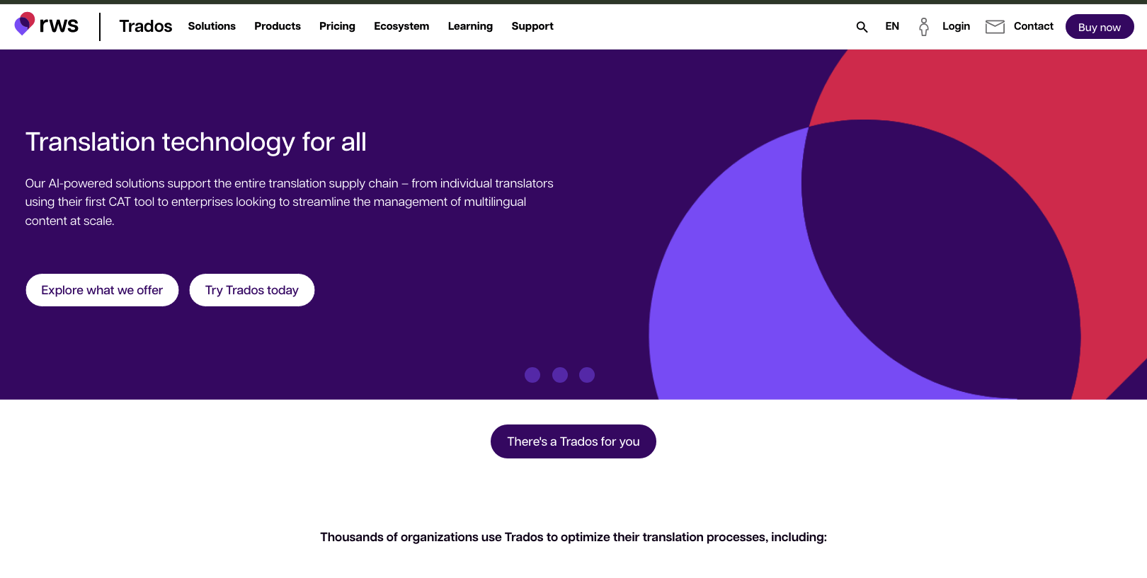 RWS Trados Studio is a legacy Computer-Assisted Translation (CAT) tool that has been a long-standing industry standard for professional translators and localization teams. While it’s not a cloud-native platform, it is still a good tool for complex, high-volume projects.