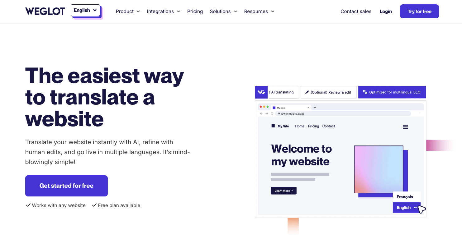 Weglot is a simple solution for website translation. It’s known for its ease of use and quick setup, making it an option for businesses that want to translate their website without extensive technical knowledge.