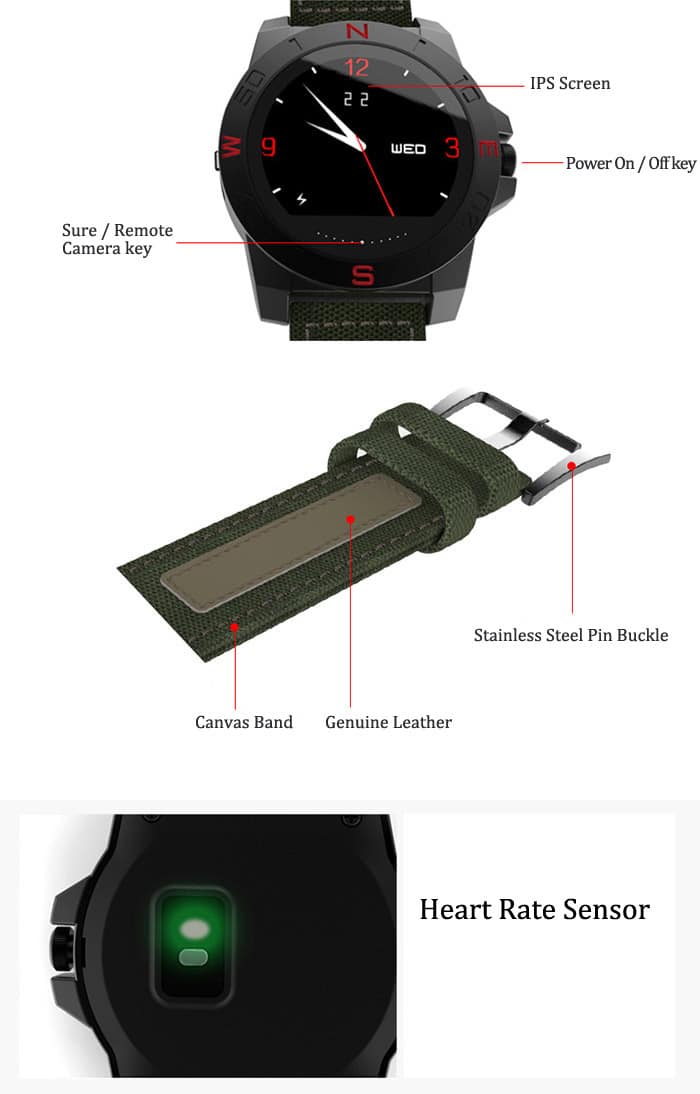 This smart sport watch is given a very sporty look. As because it is a sports watch so its looks and design is very awesome and stylish. The dial is round in shape and watch band is made up of from canvas plus genuine leather.