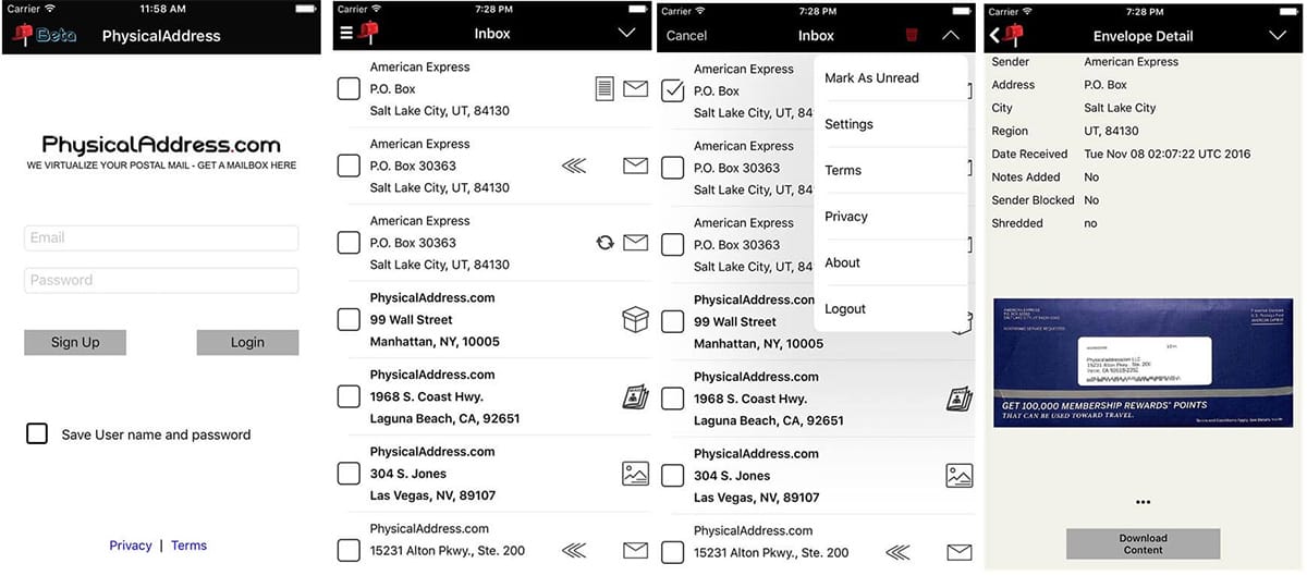 - The virtualized mail app of PhysicalAddress.com comes with a contemporary design. It is optimized for mobile and other portable devices. In case, you face any difficulty in using the Virtualized mail app to get postal mail, you can watch tutorials or videos given on the website of the agency. By watching these video tutorials, you can learn more ways to use your virtual business address for the betterment of your business.
