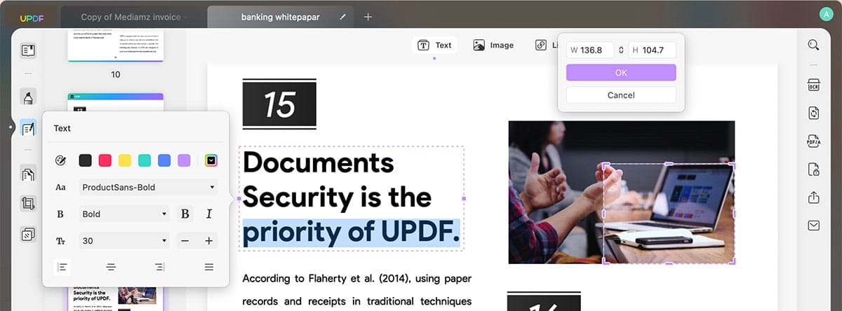 With the help of UPDF, readers can edit texts, images, links, and backgrounds and put watermarks across the entire PDF document.