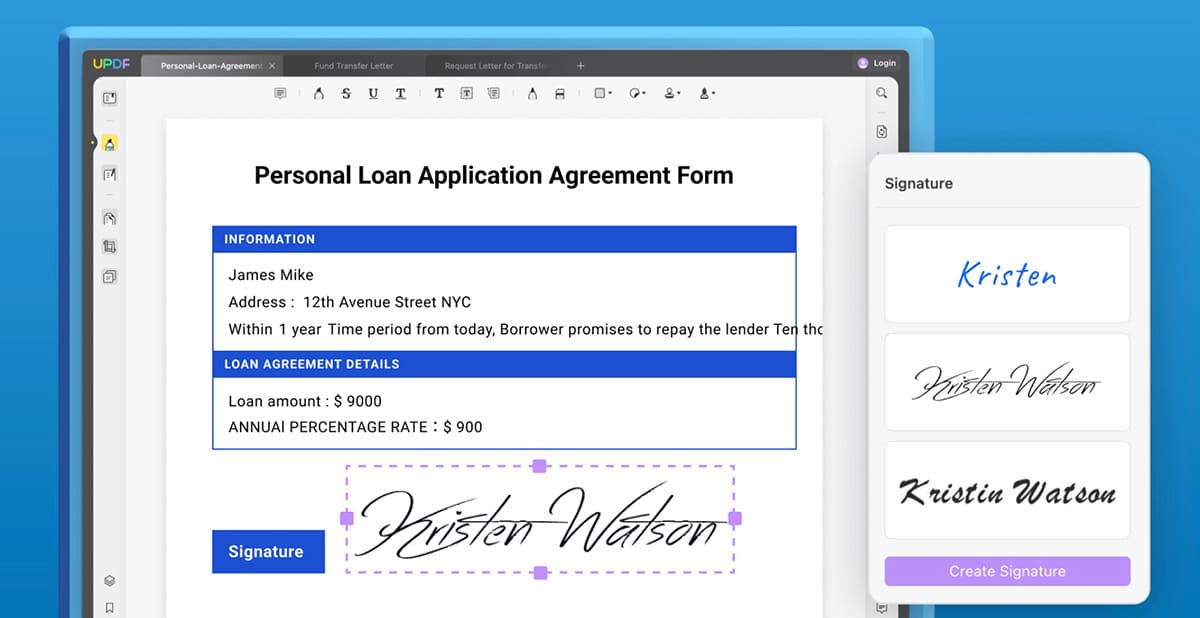 - Add signatures: Users of the UPDF PDF editor can add electronic or handwritten signatures to their PDF document. They can even move the signature to different pages of their document.